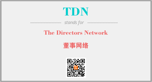 英文缩略词“TDN”经常作为“The Directors Network”的英文缩写来使用,中文表示:“董事网络”。本文将详细介绍英文缩写词TDN所代表英文单词,其对应的中文拼音、详细解释以及在英语中的流行度。此外,还有关于缩略词TDN的分类、应用领域及相关应用示例等。