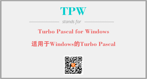 上述内容是“Turbo Pascal for Windows”作为“TPW”的缩写,解释为“适用于Windows的Turbo Pascal”时的信息,以及英文缩略词TPW所代表的英文单词,其对应的中文拼音、详细解释以及在英文中的流行度和相关分类、应用领域及应用示例等。