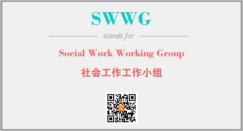上述内容是“Social Work Working Group”作为“SWWG”的缩写,解释为“社会工作工作小组”时的信息,以及英文缩略词SWWG所代表的英文单词,其对应的中文拼音、详细解释以及在英文中的流行度和相关分类、应用领域及应用示例等。