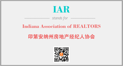 英文缩略词“IAR”经常作为“Indiana Association of REALTORS”的英文缩写来使用,中文表示:“印第安纳州房地产经纪人协会”。本文将详细介绍英文缩写词IAR所代表英文单词,其对应的中文拼音、详细解释以及在英语中的流行度。此外,还有关于缩略词IAR的分类、应用领域及相关应用示例等。