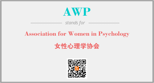 上述内容是“Association for Women in Psychology”作为“AWP”的缩写,解释为“女性心理学协会”时的信息,以及英文缩略词AWP所代表的英文单词,其对应的中文拼音、详细解释以及在英文中的流行度和相关分类、应用领域及应用示例等。