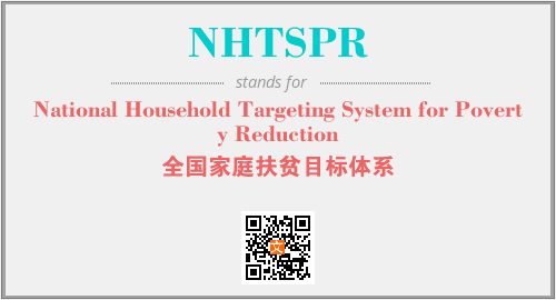 上述内容是“National Household Targeting System for Poverty Reduction”作为“NHTSPR”的缩写,解释为“全国家庭扶贫目标体系”时的信息,以及英文缩略词NHTSPR所代表的英文单词,其对应的中文拼音、详细解释以及在英文中的流行度和相关分类、应用领域及应用示例等。