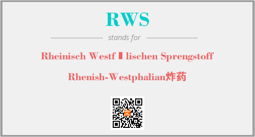 上述内容是“Rheinisch Westfälischen Sprengstoff”作为“RWS”的缩写,解释为“Rhenish-Westphalian炸药”时的信息,以及英文缩略词RWS所代表的英文单词,其对应的中文拼音、详细解释以及在英文中的流行度和相关分类、应用领域及应用示例等。