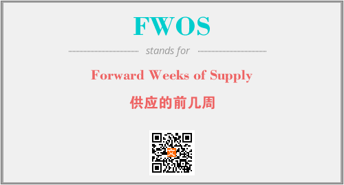 英文缩略词“FWOS”经常作为“Forward Weeks of Supply”的英文缩写来使用,中文表示:“供应的前几周”。本文将详细介绍英文缩写词FWOS所代表英文单词,其对应的中文拼音、详细解释以及在英语中的流行度。此外,还有关于缩略词FWOS的分类、应用领域及相关应用示例等。