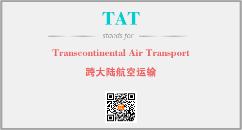 上述内容是“Transcontinental Air Transport”作为“TAT”的缩写,解释为“跨大陆航空运输”时的信息,以及英文缩略词TAT所代表的英文单词,其对应的中文拼音、详细解释以及在英文中的流行度和相关分类、应用领域及应用示例等。