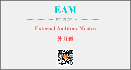 上述内容是“External Auditory Meatus”作为“EAM”的缩写,解释为“外耳道”时的信息,以及英文缩略词EAM所代表的英文单词,其对应的中文拼音、详细解释以及在英文中的流行度和相关分类、应用领域及应用示例等。