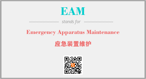 上述内容是“Emergency Apparatus Maintenance”作为“EAM”的缩写,解释为“应急装置维护”时的信息,以及英文缩略词EAM所代表的英文单词,其对应的中文拼音、详细解释以及在英文中的流行度和相关分类、应用领域及应用示例等。