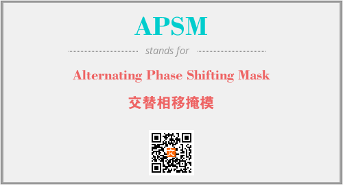 英文缩略词“APSM”经常作为“Alternating Phase Shifting Mask”的英文缩写来使用,中文表示:“交替相移掩模”。本文将详细介绍英文缩写词APSM所代表英文单词,其对应的中文拼音、详细解释以及在英语中的流行度。此外,还有关于缩略词APSM的分类、应用领域及相关应用示例等。
