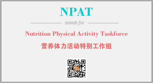 上述内容是“Nutrition Physical Activity Taskforce”作为“NPAT”的缩写,解释为“营养体力活动特别工作组”时的信息,以及英文缩略词NPAT所代表的英文单词,其对应的中文拼音、详细解释以及在英文中的流行度和相关分类、应用领域及应用示例等。