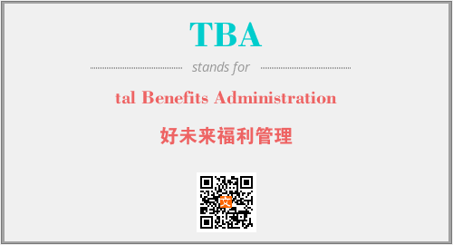 英文缩略词“TBA”经常作为“tal Benefits Administration”的英文缩写来使用,中文表示:“好未来福利管理”。本文将详细介绍英文缩写词TBA所代表英文单词,其对应的中文拼音、详细解释以及在英语中的流行度。此外,还有关于缩略词TBA的分类、应用领域及相关应用示例等。