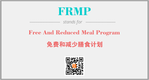 英文缩略词“FRMP”经常作为“Free And Reduced Meal Program”的英文缩写来使用,中文表示:“免费和减少膳食计划”。本文将详细介绍英文缩写词FRMP所代表英文单词,其对应的中文拼音、详细解释以及在英语中的流行度。此外,还有关于缩略词FRMP的分类、应用领域及相关应用示例等。