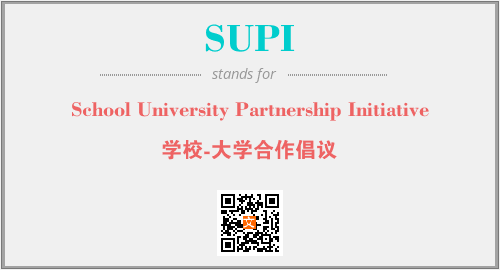 上述内容是“School University Partnership Initiative”作为“SUPI”的缩写,解释为“学校-大学合作倡议”时的信息,以及英文缩略词SUPI所代表的英文单词,其对应的中文拼音、详细解释以及在英文中的流行度和相关分类、应用领域及应用示例等。