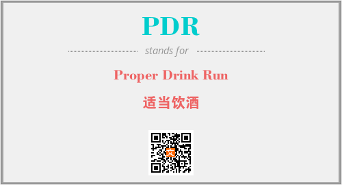 英文缩略词“PDR”经常作为“Proper Drink Run”的英文缩写来使用,中文表示:“适当饮酒”。本文将详细介绍英文缩写词PDR所代表英文单词,其对应的中文拼音、详细解释以及在英语中的流行度。此外,还有关于缩略词PDR的分类、应用领域及相关应用示例等。