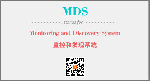 英文缩略词“MDS”经常作为“Monitoring and Discovery System”的英文缩写来使用,中文表示:“监控和发现系统”。本文将详细介绍英文缩写词MDS所代表英文单词,其对应的中文拼音、详细解释以及在英语中的流行度。此外,还有关于缩略词MDS的分类、应用领域及相关应用示例等。