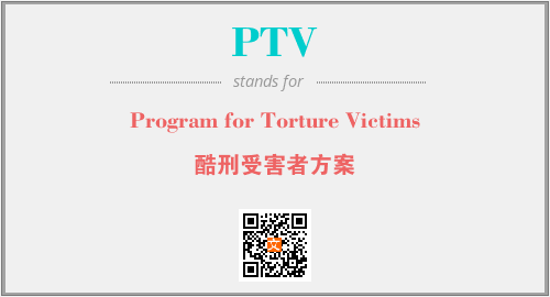英文缩略词“PTV”经常作为“Program for Torture Victims”的英文缩写来使用,中文表示:“酷刑受害者方案”。本文将详细介绍英文缩写词PTV所代表英文单词,其对应的中文拼音、详细解释以及在英语中的流行度。此外,还有关于缩略词PTV的分类、应用领域及相关应用示例等。