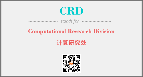 上述内容是“Computational Research Division”作为“CRD”的缩写,解释为“计算研究处”时的信息,以及英文缩略词CRD所代表的英文单词,其对应的中文拼音、详细解释以及在英文中的流行度和相关分类、应用领域及应用示例等。