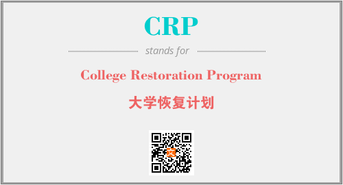 以上为College Restoration Program英文缩略词CRP的中文解释,以及该英文缩写在英语的流行度、分类和应用领域方面的信息。