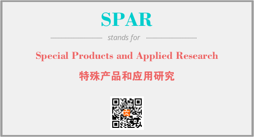 上述内容是“Special Products and Applied Research”作为“SPAR”的缩写,解释为“特殊产品和应用研究”时的信息,以及英文缩略词SPAR所代表的英文单词,其对应的中文拼音、详细解释以及在英文中的流行度和相关分类、应用领域及应用示例等。