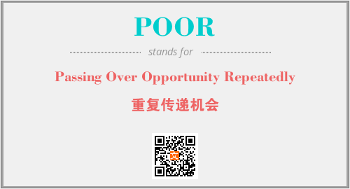 上述内容是“Passing Over Opportunity Repeatedly”作为“POOR”的缩写,解释为“重复传递机会”时的信息,以及英文缩略词POOR所代表的英文单词,其对应的中文拼音、详细解释以及在英文中的流行度和相关分类、应用领域及应用示例等。