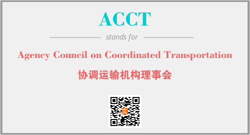上述内容是“Agency Council on Coordinated Transportation”作为“ACCT”的缩写,解释为“协调运输机构理事会”时的信息,以及英文缩略词ACCT所代表的英文单词,其对应的中文拼音、详细解释以及在英文中的流行度和相关分类、应用领域及应用示例等。