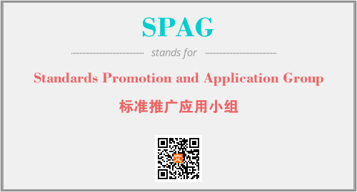 上述内容是“Standards Promotion and Application Group”作为“SPAG”的缩写,解释为“标准推广应用小组”时的信息,以及英文缩略词SPAG所代表的英文单词,其对应的中文拼音、详细解释以及在英文中的流行度和相关分类、应用领域及应用示例等。