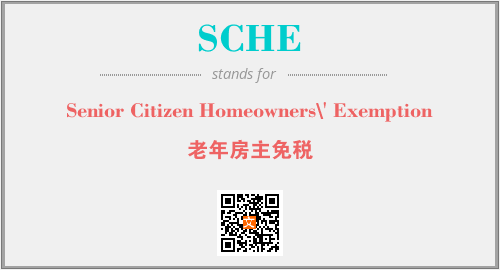 上述内容是“Senior Citizen Homeowners\' Exemption”作为“SCHE”的缩写,解释为“老年房主免税”时的信息,以及英文缩略词SCHE所代表的英文单词,其对应的中文拼音、详细解释以及在英文中的流行度和相关分类、应用领域及应用示例等。