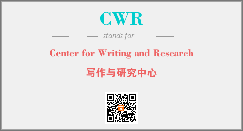 以上为Center for Writing and Research英文缩略词CWR的中文解释,以及该英文缩写在英语的流行度、分类和应用领域方面的信息。