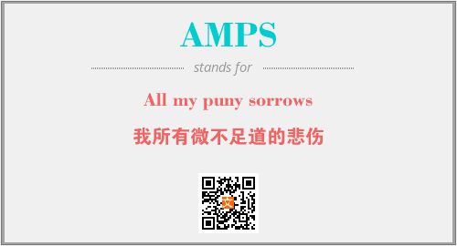 上述内容是“All my puny sorrows”作为“AMPS”的缩写,解释为“我所有微不足道的悲伤”时的信息,以及英文缩略词AMPS所代表的英文单词,其对应的中文拼音、详细解释以及在英文中的流行度和相关分类、应用领域及应用示例等。