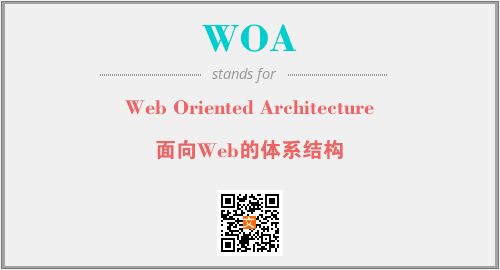 英文缩略词“WOA”经常作为“Web Oriented Architecture”的英文缩写来使用,中文表示:“面向Web的体系结构”。本文将详细介绍英文缩写词WOA所代表英文单词,其对应的中文拼音、详细解释以及在英语中的流行度。此外,还有关于缩略词WOA的分类、应用领域及相关应用示例等。