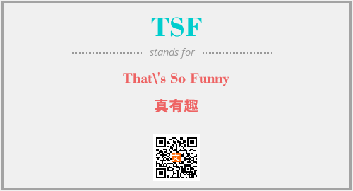 以上为That\'s So Funny英文缩略词TSF的中文解释,以及该英文缩写在英语的流行度、分类和应用领域方面的信息。