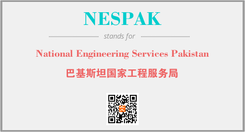 上述内容是“National Engineering Services Pakistan”作为“NESPAK”的缩写,解释为“巴基斯坦国家工程服务局”时的信息,以及英文缩略词NESPAK所代表的英文单词,其对应的中文拼音、详细解释以及在英文中的流行度和相关分类、应用领域及应用示例等。