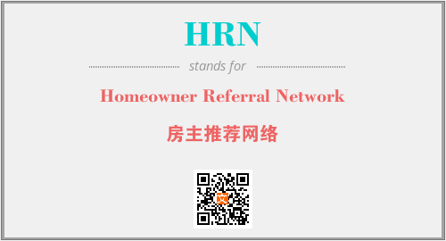 英文缩略词“HRN”经常作为“Homeowner Referral Network”的英文缩写来使用,中文表示:“房主推荐网络”。本文将详细介绍英文缩写词HRN所代表英文单词,其对应的中文拼音、详细解释以及在英语中的流行度。此外,还有关于缩略词HRN的分类、应用领域及相关应用示例等。