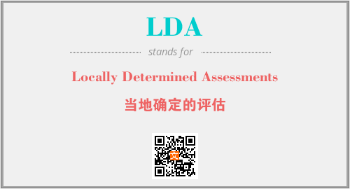 上述内容是“Locally Determined Assessments”作为“LDA”的缩写,解释为“当地确定的评估”时的信息,以及英文缩略词LDA所代表的英文单词,其对应的中文拼音、详细解释以及在英文中的流行度和相关分类、应用领域及应用示例等。