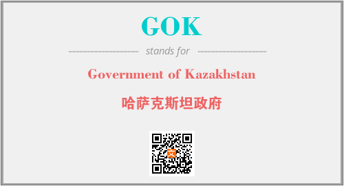 英文缩略词“GOK”经常作为“Government of Kazakhstan”的英文缩写来使用,中文表示:“哈萨克斯坦政府”。本文将详细介绍英文缩写词GOK所代表英文单词,其对应的中文拼音、详细解释以及在英语中的流行度。此外,还有关于缩略词GOK的分类、应用领域及相关应用示例等。