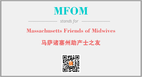 英文缩略词“MFOM”经常作为“Massachusetts Friends of Midwives”的英文缩写来使用,中文表示:“马萨诸塞州助产士之友”。本文将详细介绍英文缩写词MFOM所代表英文单词,其对应的中文拼音、详细解释以及在英语中的流行度。此外,还有关于缩略词MFOM的分类、应用领域及相关应用示例等。