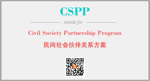 上述内容是“Civil Society Partnership Program”作为“CSPP”的缩写,解释为“民间社会伙伴关系方案”时的信息,以及英文缩略词CSPP所代表的英文单词,其对应的中文拼音、详细解释以及在英文中的流行度和相关分类、应用领域及应用示例等。