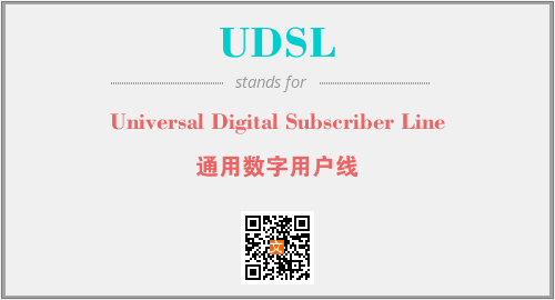 英文缩略词“UDSL”经常作为“Universal Digital Subscriber Line”的英文缩写来使用,中文表示:“通用数字用户线”。本文将详细介绍英文缩写词UDSL所代表英文单词,其对应的中文拼音、详细解释以及在英语中的流行度。此外,还有关于缩略词UDSL的分类、应用领域及相关应用示例等。