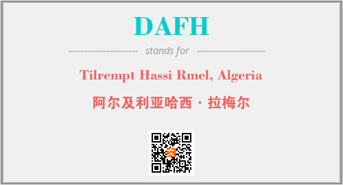上述内容是“Tilrempt Hassi Rmel, Algeria”作为“DAFH”的缩写,解释为“阿尔及利亚哈西·拉梅尔”时的信息,以及英文缩略词DAFH所代表的英文单词,其对应的中文拼音、详细解释以及在英文中的流行度和相关分类、应用领域及应用示例等。