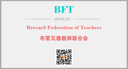 以上为Brevard Federation of Teachers英文缩略词BFT的中文解释,以及该英文缩写在英语的流行度、分类和应用领域方面的信息。