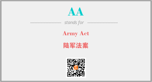 英文缩略词“AA”经常作为“Army Act”的英文缩写来使用,中文表示:“陆军法案”。本文将详细介绍英文缩写词AA所代表英文单词,其对应的中文拼音、详细解释以及在英语中的流行度。此外,还有关于缩略词AA的分类、应用领域及相关应用示例等。