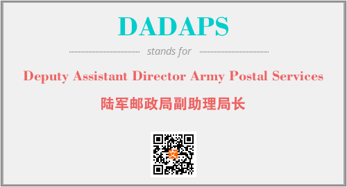 以上为Deputy Assistant Director Army Postal Services英文缩略词DADAPS的中文解释,以及该英文缩写在英语的流行度、分类和应用领域方面的信息。