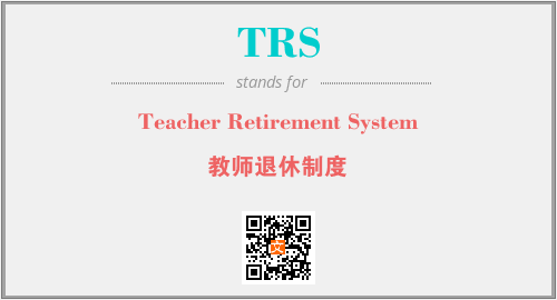 英文缩略词“TRS”经常作为“Teacher Retirement System”的英文缩写来使用,中文表示:“教师退休制度”。本文将详细介绍英文缩写词TRS所代表英文单词,其对应的中文拼音、详细解释以及在英语中的流行度。此外,还有关于缩略词TRS的分类、应用领域及相关应用示例等。