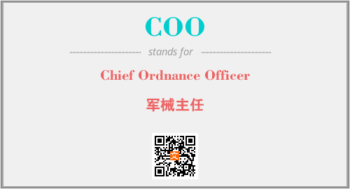 英文缩略词“COO”经常作为“Chief Ordnance Officer”的英文缩写来使用,中文表示:“军械主任”。本文将详细介绍英文缩写词COO所代表英文单词,其对应的中文拼音、详细解释以及在英语中的流行度。此外,还有关于缩略词COO的分类、应用领域及相关应用示例等。