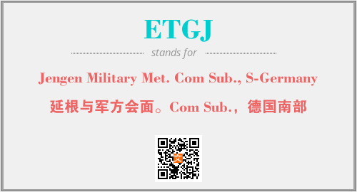 上述内容是“Jengen Military Met. Com Sub., S-Germany”作为“ETGJ”的缩写,解释为“延根与军方会面。Com Sub.,德国南部”时的信息,以及英文缩略词ETGJ所代表的英文单词,其对应的中文拼音、详细解释以及在英文中的流行度和相关分类、应用领域及应用示例等。