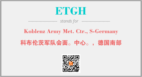 英文缩略词“ETGH”经常作为“Koblenz Army Met. Ctr., S-Germany”的英文缩写来使用,中文表示:“科布伦茨军队会面。中心。,德国南部”。本文将详细介绍英文缩写词ETGH所代表英文单词,其对应的中文拼音、详细解释以及在英语中的流行度。此外,还有关于缩略词ETGH的分类、应用领域及相关应用示例等。