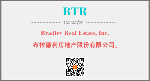 上述内容是“Bradley Real Estate, Inc.”作为“BTR”的缩写,解释为“布拉德利房地产股份有限公司。”时的信息,以及英文缩略词BTR所代表的英文单词,其对应的中文拼音、详细解释以及在英文中的流行度和相关分类、应用领域及应用示例等。