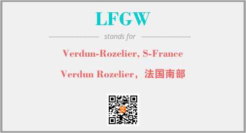上述内容是“Verdun-Rozelier, S-France”作为“LFGW”的缩写,解释为“Verdun Rozelier,法国南部”时的信息,以及英文缩略词LFGW所代表的英文单词,其对应的中文拼音、详细解释以及在英文中的流行度和相关分类、应用领域及应用示例等。