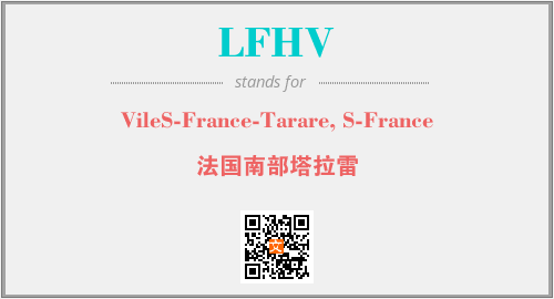 上述内容是“VileS-France-Tarare, S-France”作为“LFHV”的缩写,解释为“法国南部塔拉雷”时的信息,以及英文缩略词LFHV所代表的英文单词,其对应的中文拼音、详细解释以及在英文中的流行度和相关分类、应用领域及应用示例等。