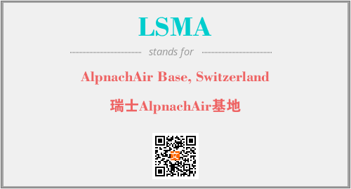 英文缩略词“LSMA”经常作为“AlpnachAir Base, Switzerland”的英文缩写来使用,中文表示:“瑞士AlpnachAir基地”。本文将详细介绍英文缩写词LSMA所代表英文单词,其对应的中文拼音、详细解释以及在英语中的流行度。此外,还有关于缩略词LSMA的分类、应用领域及相关应用示例等。