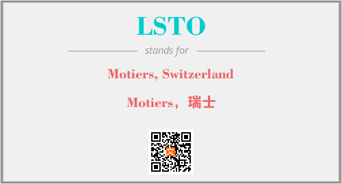 上述内容是“Motiers, Switzerland”作为“LSTO”的缩写,解释为“Motiers,瑞士”时的信息,以及英文缩略词LSTO所代表的英文单词,其对应的中文拼音、详细解释以及在英文中的流行度和相关分类、应用领域及应用示例等。